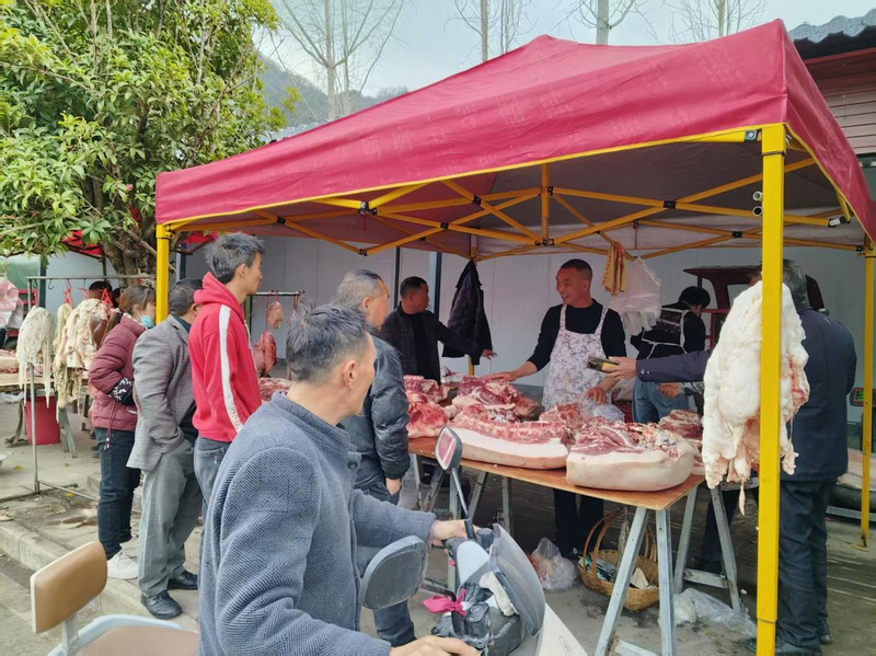 “明天就是腊月初一,儿女们打工要回来了,微信里说特别馋家乡的腊味,我要多买些猪肉做腊肉香肠!”居民杨兴忠说。