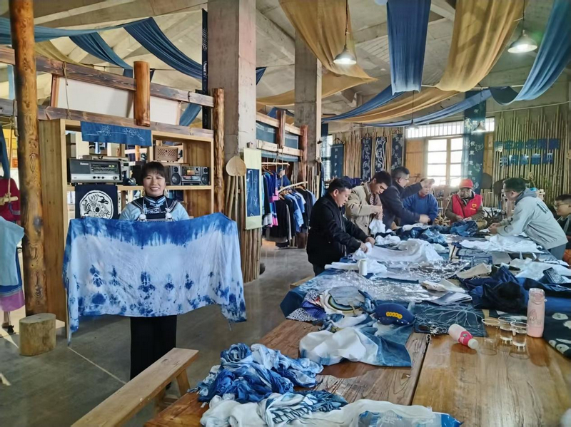 “蓝布谣”非遗体验区,各族群众亲手制作心中描绘的蜡染、扎染作品。欢声笑语中,传承中华优秀传统文化。