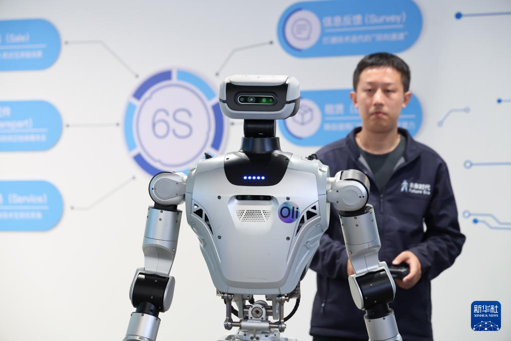 1月16日,在位于深圳市龙岗区的全球首家机器人6S店,工作人员展示一款具身机器人。